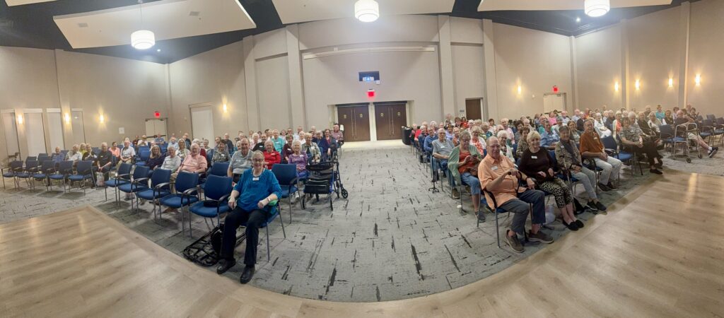 Presbyterian Village North (PVN) more than 115 residents started the year with a captivating discussion during the third installment of Executive Director, Dustin Allen’s popular book review series. Held last night, the event featured Framed: Astonishing True Stories of Wrongful Convictions by John Grisham and Jim McCloskey, a #1 New York Times bestseller that dives into ten harrowing true stories of justice denied.