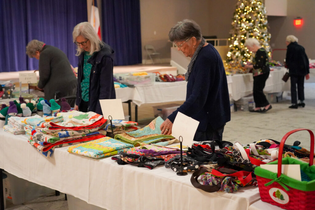 The Sew ‘N Sews go through roughly 350 pounds of stuffing annually, much of which is used to make toys for their annual Holiday sale. This year’s sale, a beloved seasonal tradition, took place in McGowan Auditorium and offered residents and community members the chance to purchase handmade gifts while supporting the group’s creative handiwork.